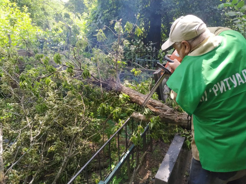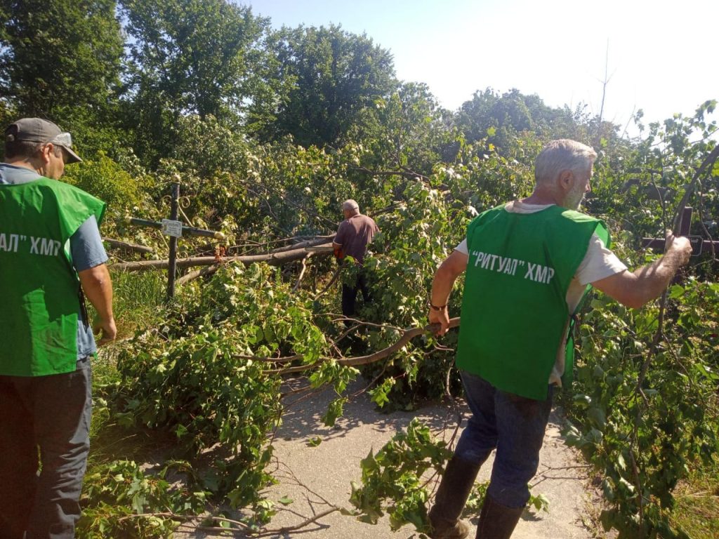 Комунальне підприємство «Ритуал» працює над ліквідацією наслідків буревію на території міських кладовищ та крематорію. Із 102 повалених дерев та зламаних гілок уже розпилено та вивезено 48 дерев і майже 100 гілок із залученням фахівців та спецтехніки.